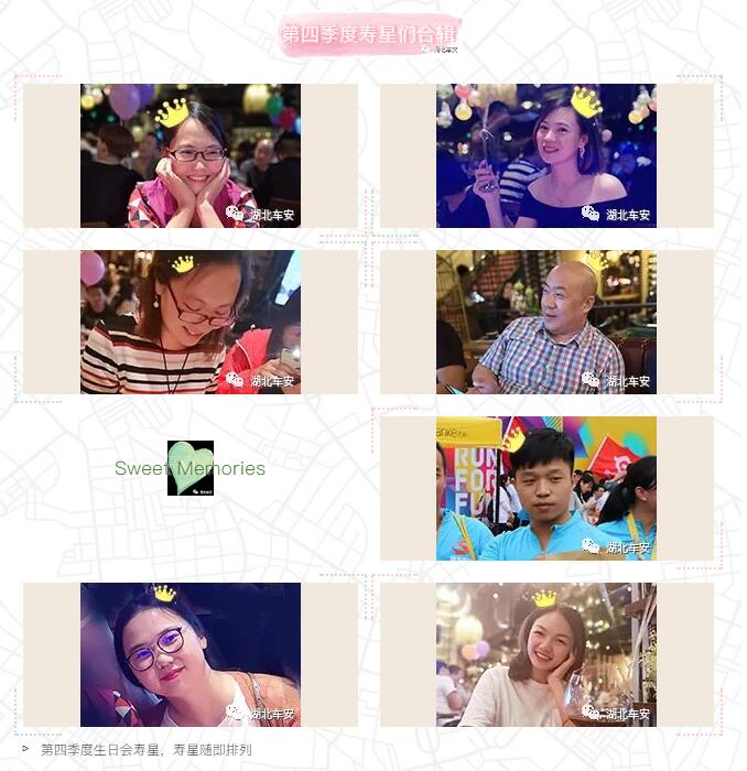 每一场的生日会,湖北车安都致力于将点滴幸福传递给每个人,让伙伴们可以真切感受到公司融融的关爱与暖暖的祝福,让每个湖北车安人都能找到一份专属于自己的归属感。