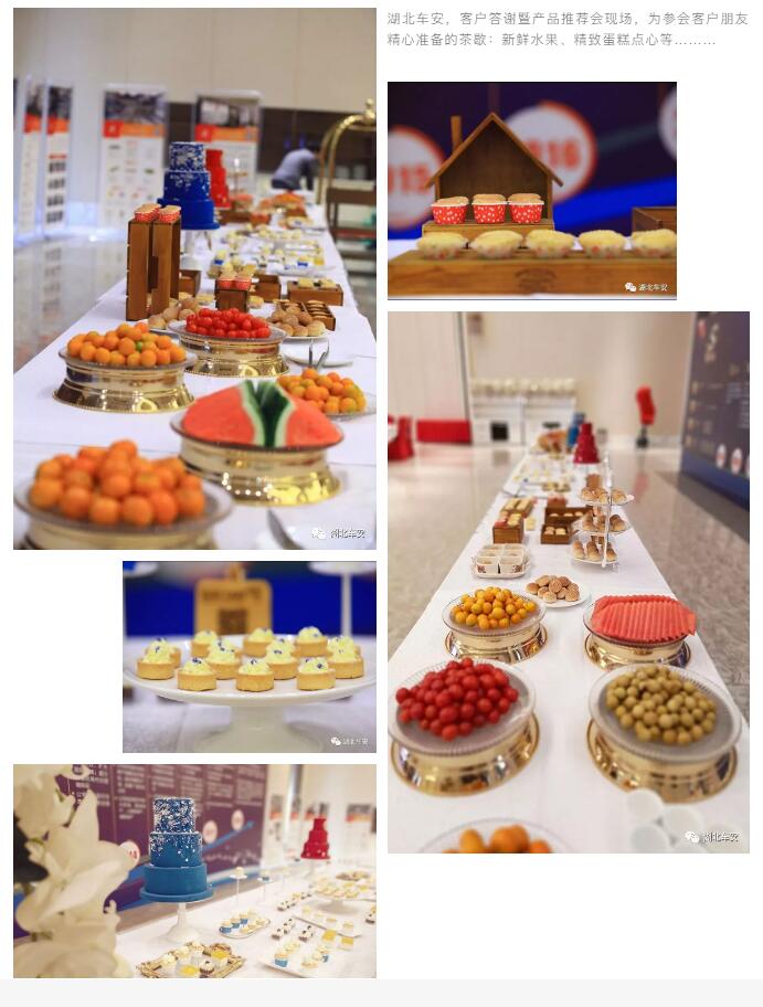 湖北车安,客户答谢暨产品推荐会现场,为参会客户朋友精心准备的茶歇:新鲜水果、精致蛋糕点心等………
