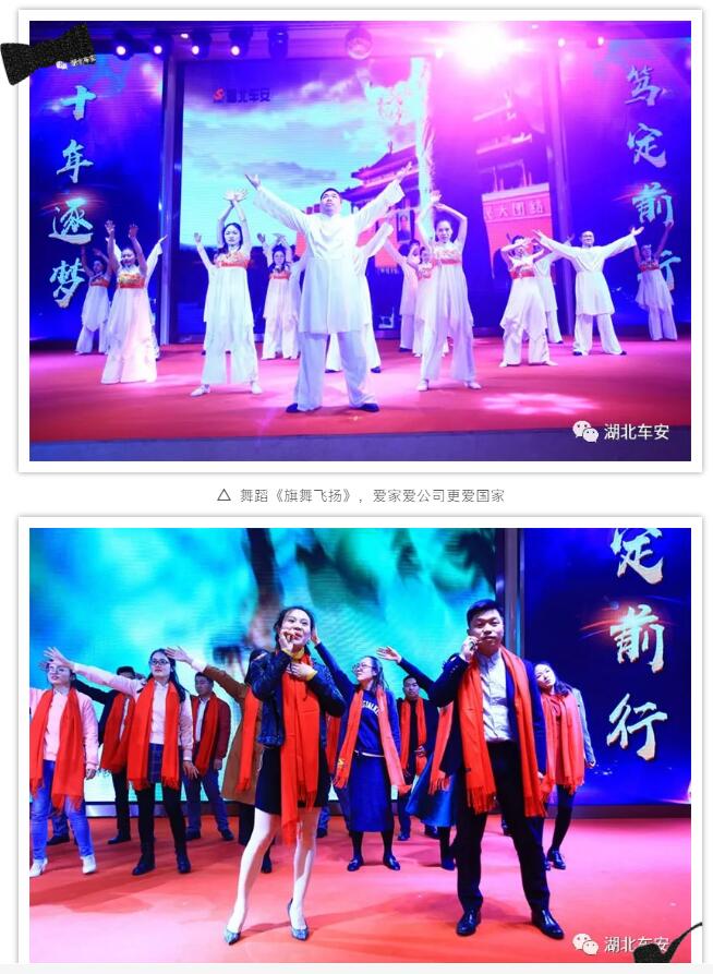 更有湖北车安商务、设计、业务部共同精心准备的诗歌《征程之路》及湖北车安全体部门代表共同演绎的合唱《相亲相爱》等表演。