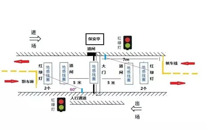 5、大门宽度不超过6米,感应线圈安在中间,就这样进出车辆都能感应,读卡距离3-5米,读卡角度60度。