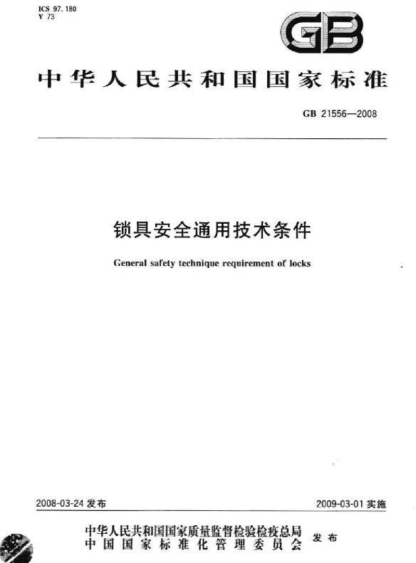 锁具行业有国家强制性标准——GB21556-2008《锁具安全通用技术条件》。