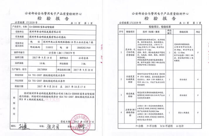 车安科技智能锁,除了出厂前的各种极端测试外,全系都通过国家安全防范报警系统