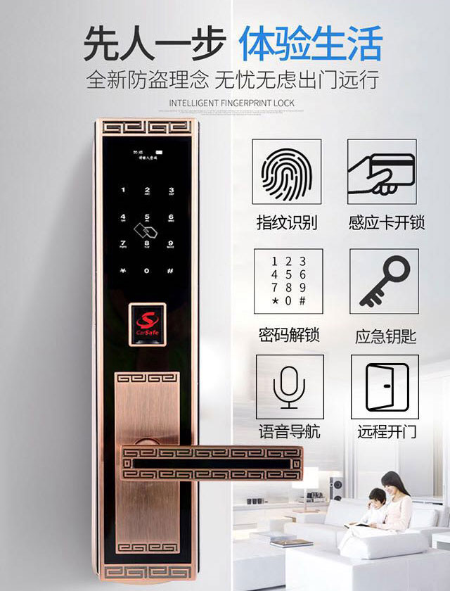 A:智能门锁不管在指纹辨认模块、规划理念、外观外型、外表处置、锁芯技能、离合器技能、显现技能等都比同类商品有足够的优势。